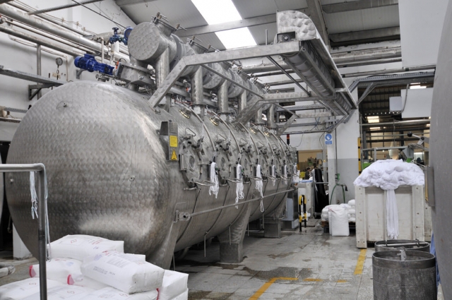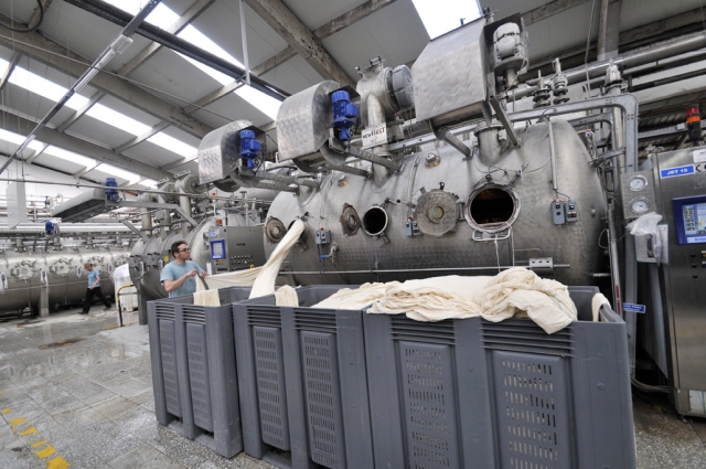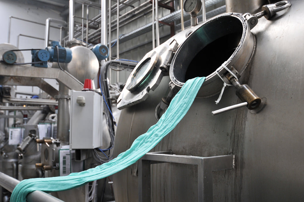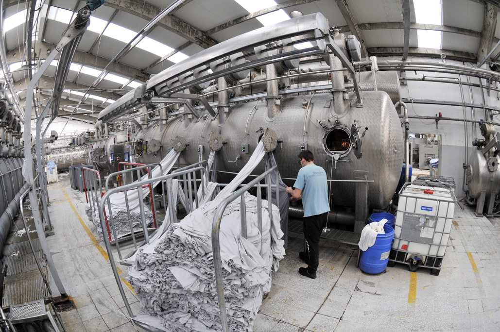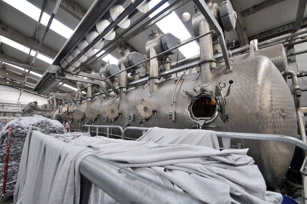 Los tejidos llegan en crudo. Luego se someten a ambos procesos químicos y físicos en función del tipo de fibra y del tipo de producto final a obtener.